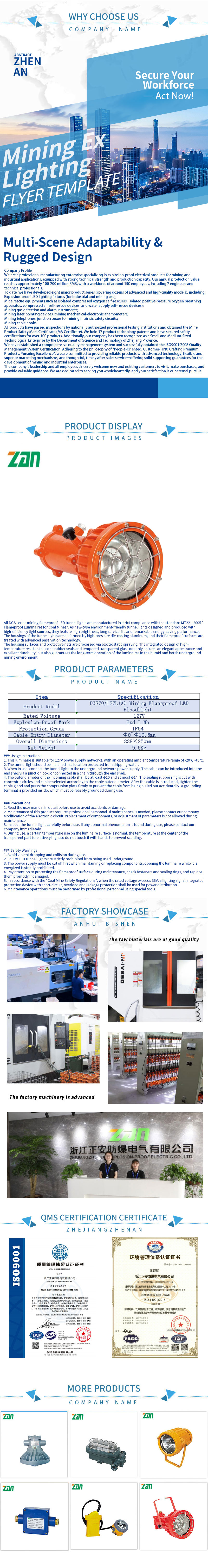 Madencilik aleve dayanıklı LED aydınlatma ekipmanlarımız, yeraltı yolları, çalışma yüzeyleri ve geçitler için güvenilir, endişesiz aydınlatma çözümleri sunmak üzere katı küresel madencilik güvenlik standartlarına bağlı kalarak, zorlu yeraltı madenciliği ortamları için profesyonel olarak tasarlanmıştır. Madencilik operasyonları için temel güvenlik ekipmanı olan ürünlerimiz, patlamaya dayanıklı performansta birinci önceliğe sahip olup, elektrik kıvılcımlarını etkili bir şekilde izole etmek ve yanıcı gazların veya tozun tutuşmasını önlemek için gelişmiş aleve dayanıklı ve kendinden güvenli çekirdek teknolojilerini benimser ve tehlikeli madencilik alanlarının güvenlik gereksinimlerini tam olarak karşılar.